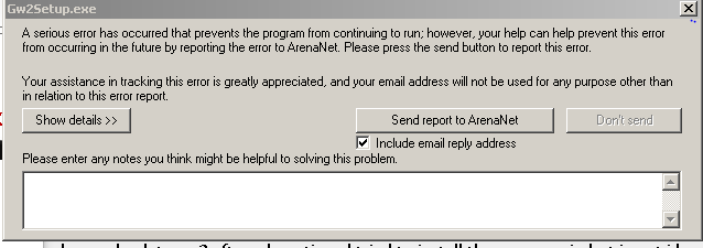 i get this message saying error occured send info to anet? then game crashes after this latest patch